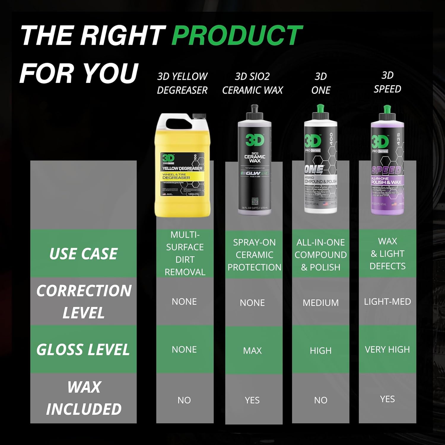 - Crafted by Pros Trusted by Enthusiasts: Made in the USA by 3D’s expert R&D team, this formula is engineered to be the safest, most effective option for wheel and tire care. Designed by detailers who know what works, it gives you that deep clean without compromising quality or safety