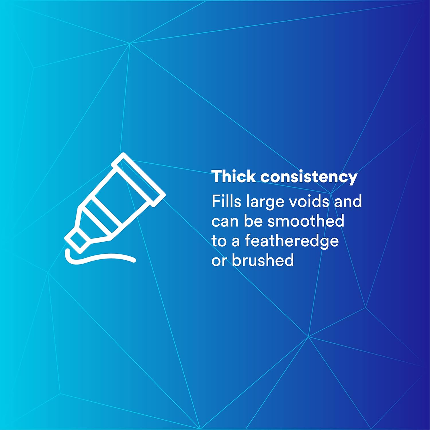 - THICK CONSISTENCY: Fills large voids and can be smoothed to a featheredge or brushed