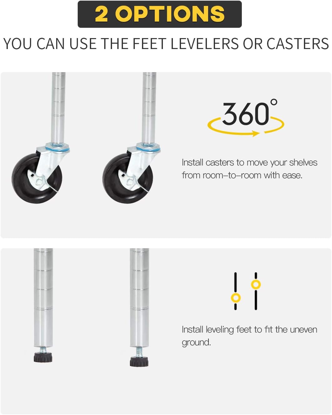 - âăADJUSTABLE WIRE SHELFă: You can adjust the height of the storage shelves according to the size of the item.The spacing of each layer of this metal shelf can be adjusted.Shelves of the wire shelving unit are adjustable height at 1" increments.storage shelves metal shelf wire shelving unit.