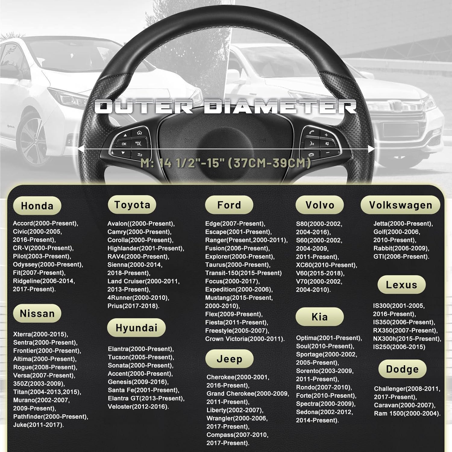 - HAND-SAVER: The fine and supple microfiber leather is much softer than factory-installed steering wheel. It provides a comfortable touch when driving, helps reduce driving fatigue, and brings you a pleasant driving experience.