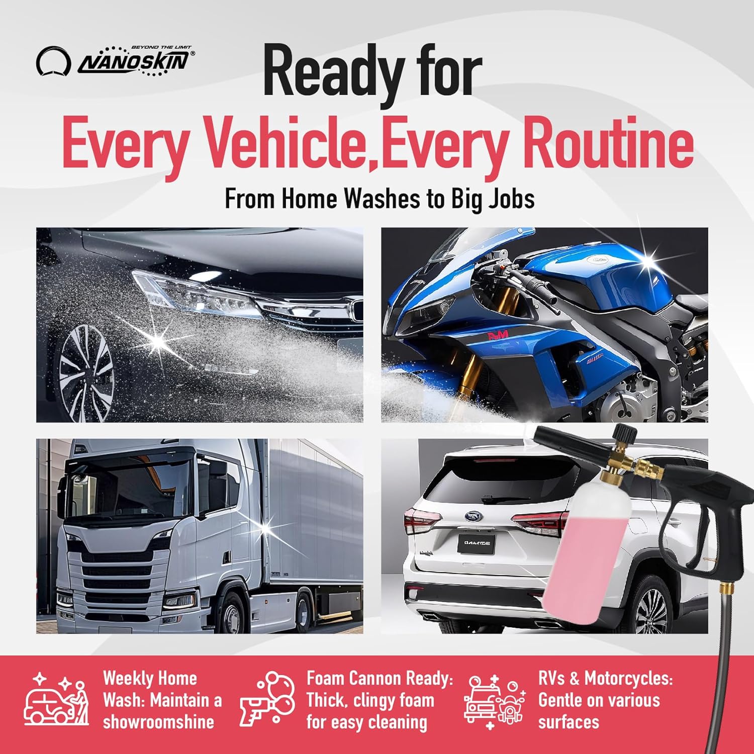Nanoskin CHERRY SUDS Foaming Car Wash Concentrated Shampoo 5 Gallons for Foam Cannons, Foam Guns, Bucket Washes | Pressure Washer Safe, Cherry-Scented Soap | Ideal for Cars, Trucks, Motorcycles, RVs