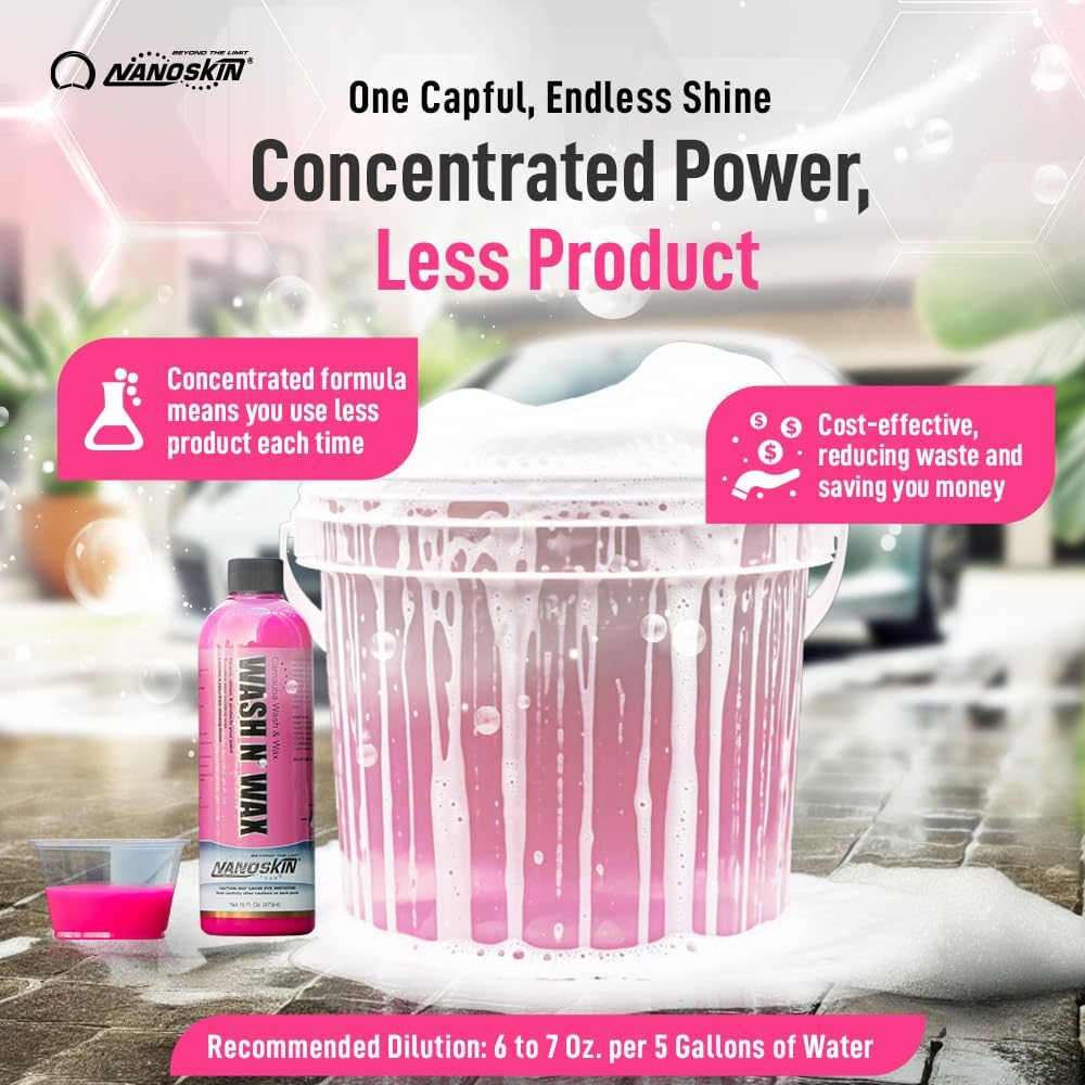 - ✅ ADD A JUST-WAXED, HIGH GLOSS FINISH: With fortified carnauba-infused formulas, Nanoskin Wash N’ Wax provides classically advanced, foaming capability for your routine washes and adds extended protection to your car, RV, boat, or vehicle finish.