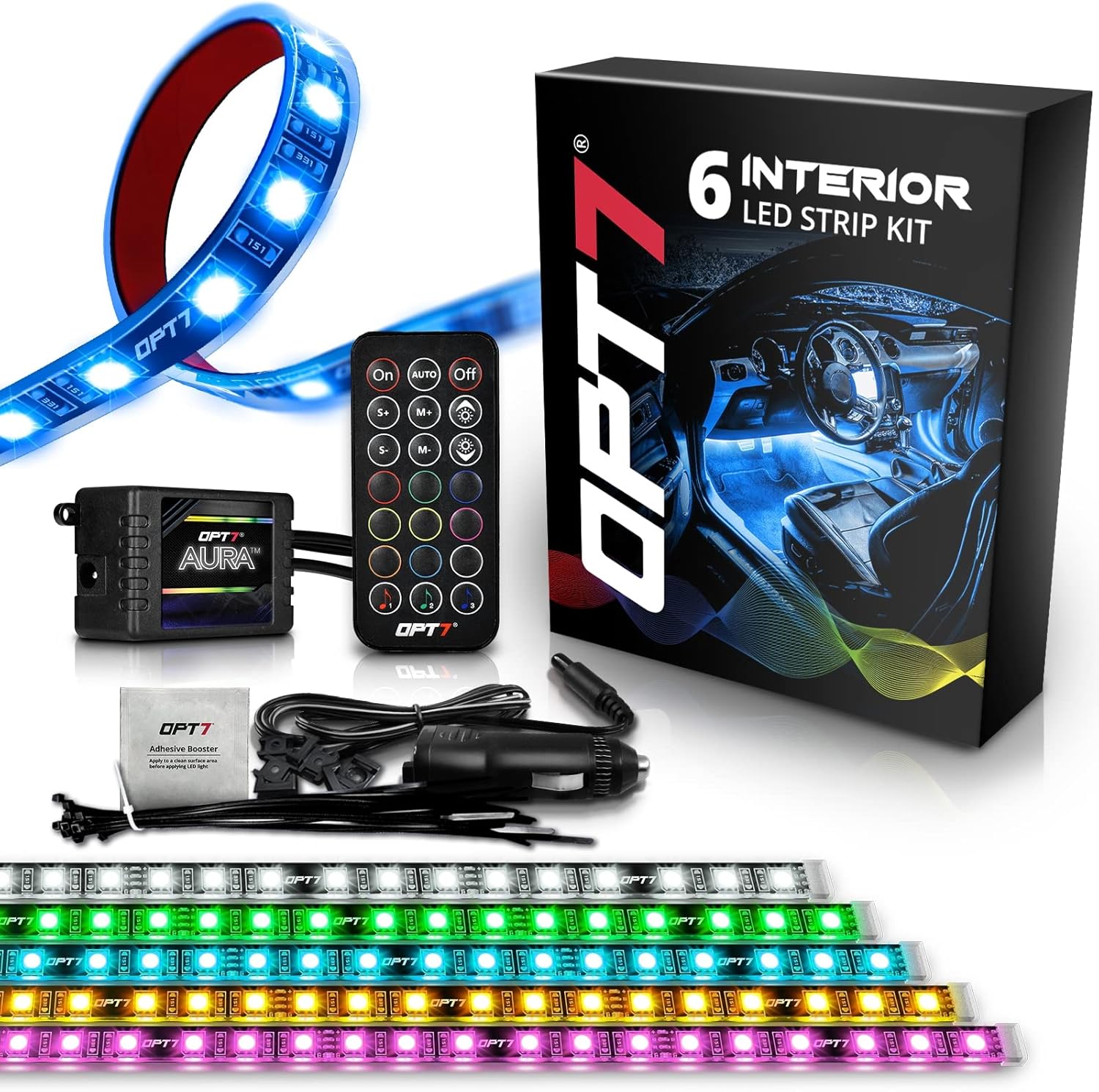 - Set the Ambience: Gather the attention of others with the OPT7 Aura Interior LED light strips! These LED strips are the best for your vehicle, featuring plenty of brightness and a wireless remote (Cycle, Strobe, Color Fade, Dimmers).