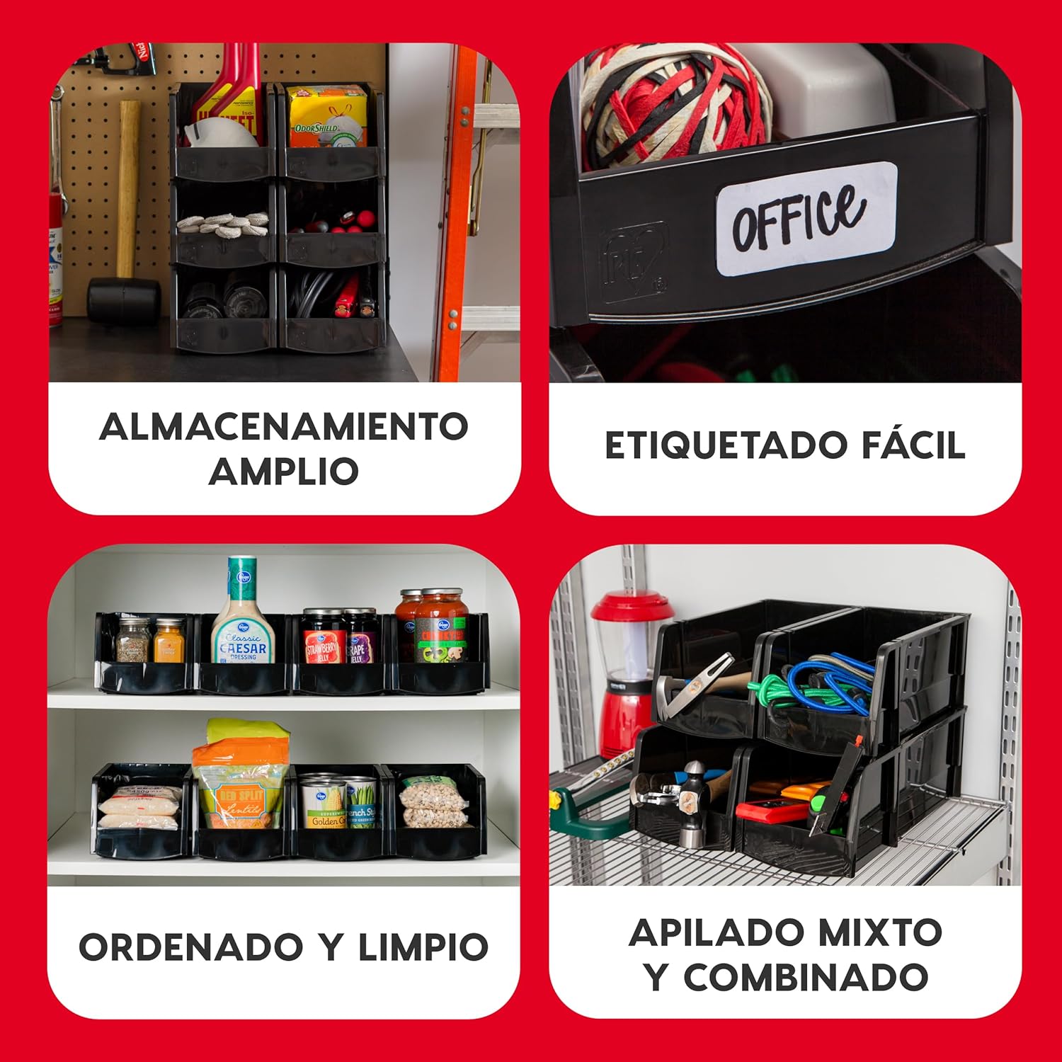 IRIS USA Plastic Shelf Bins Stackable Open Front Storage Bins Plastic Hanging Organizer Bin Caddy Basket for Hardware Crafts, Small Parts, Nuts and Bolts, Tool Storage - Medium Black 8 Pack