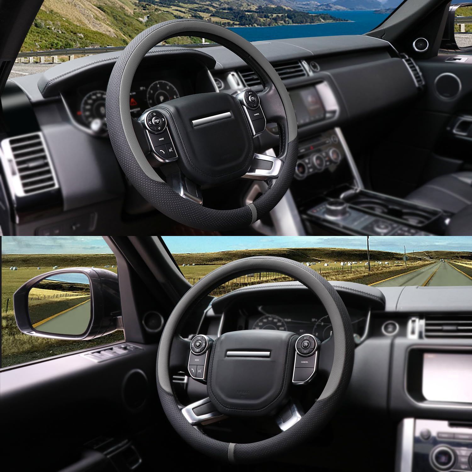 COFIT Breathable Car Steering Wheel Cover 16 inch Auto Universal Leather Wrap Non-Slip Steeringwheel Protector Automotive Interior Accessories, Grey (Suit for 15.5-16 inch)