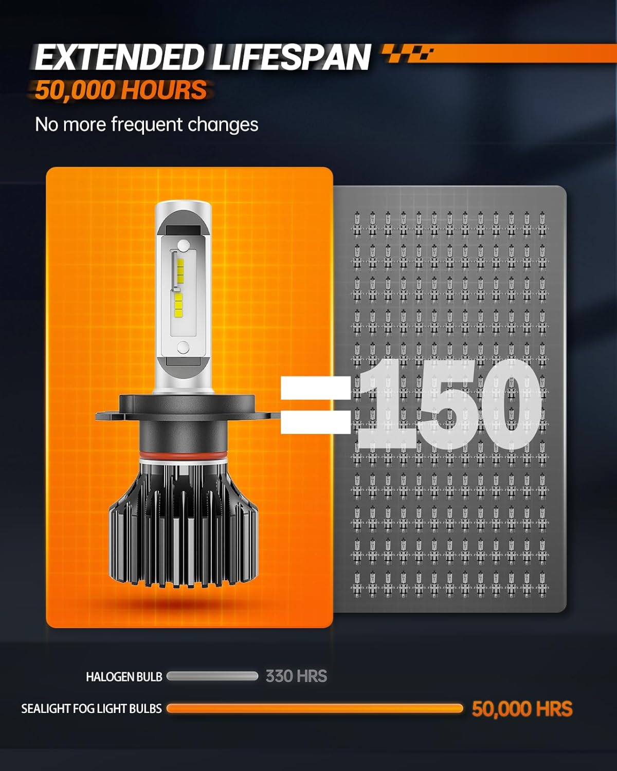 - Extended lifespan: SEALIGHT 9003 LED bulb has been rigorously tested for durability and boasts an incredible extended lifespan of over 50,000 hours for longer-lasting illumination