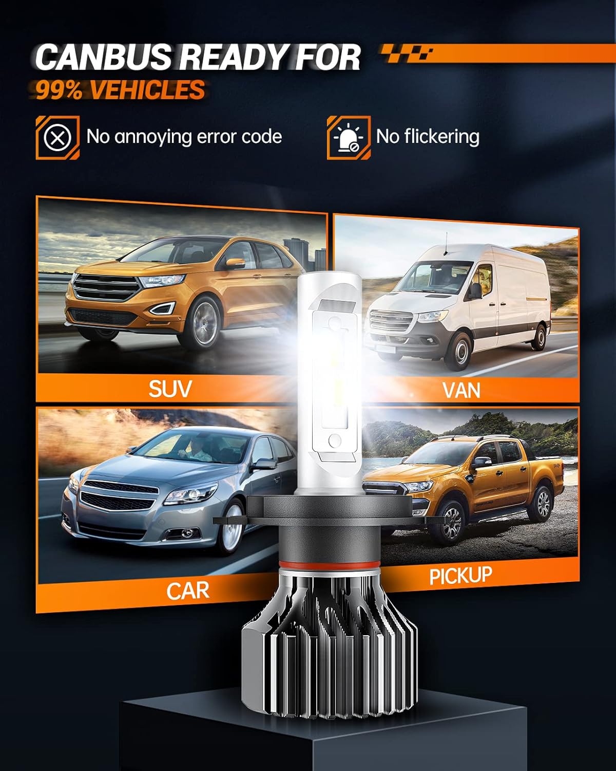 - Compact fanless design: SEALIGHT H4 LED bulb latest non-integrated fanless design is compact and silent, utilizes an advanced heat sink measuring just 1.48 inches, and features a driver for increased performance