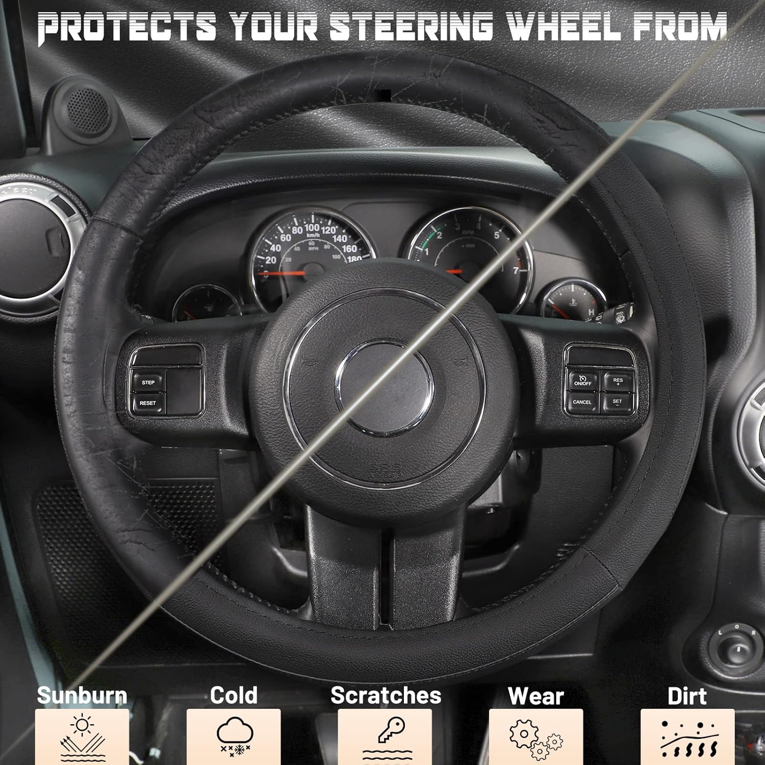- ARMOR UP YOUR CAR INTERIOR: The durable and easy-to-install steering wheel cove is the premier option for covering an old or worn original factory steering wheel. The delicate splicing design adds texture to the interior of your car.