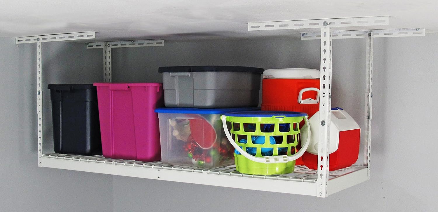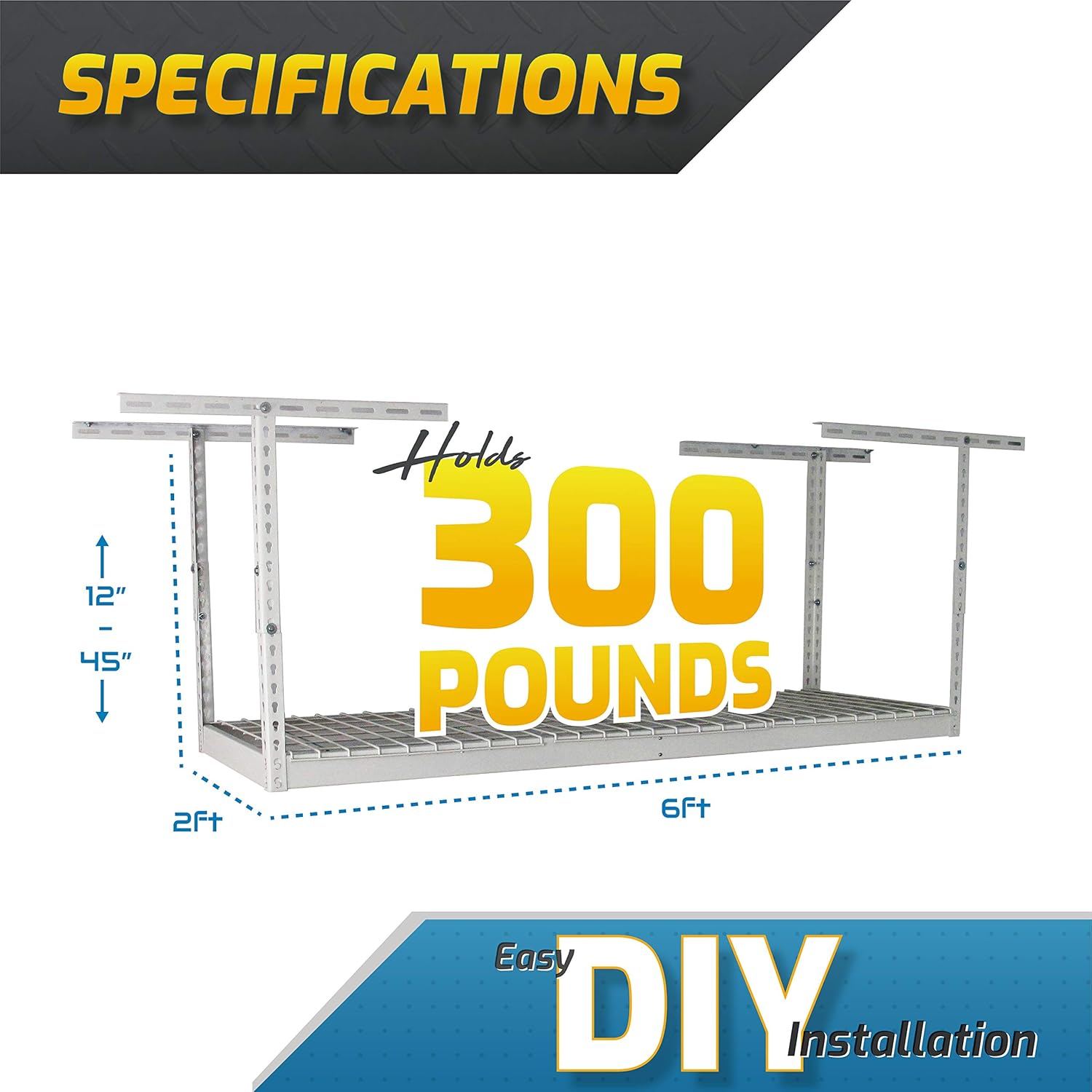 - Adjustable Ceiling Mount: The overhead garage storage rack can be adjusted to fit ceilings 12"-21" for optimal height.