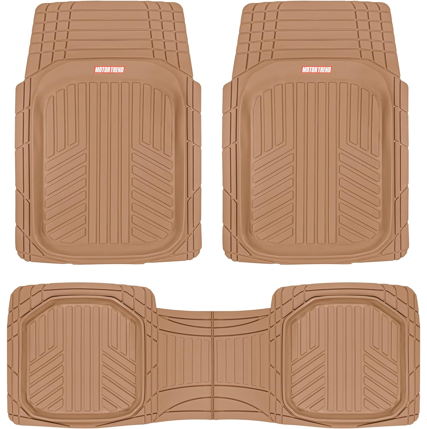 Motor Trend FlexToughXL Floor Mats for Cars Full Set, All-Weather Rubber Automotive Floor Mats, Waterproof Heavy Duty Car Mats, Flexible Floor Liners for Car Truck Van SUV, Car Floor Mats (Beige)