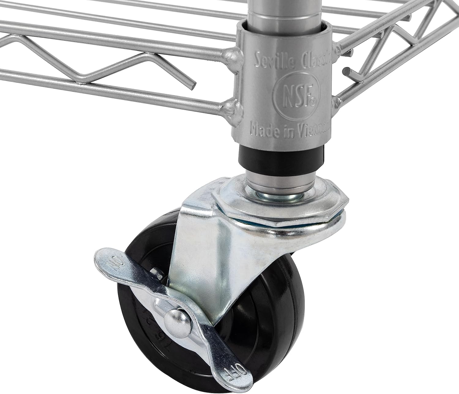 - Includes 4 wheels (with 2 locking) and leveling feet