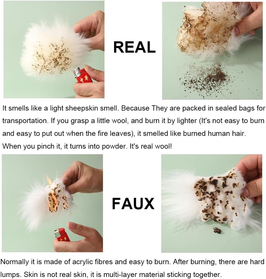 - ★ USING TIPS: Because of the tightly packaged for delivery, However, wool is very resilient and will bounce back to their original springy apearance. A vigorous shake or blowing the pad with a hair dryer will also help restore the soft, fluffy appearance. Any fold marks of wool from packaging will disappear after several days, and you will get the fluffy plush effect like the picture.