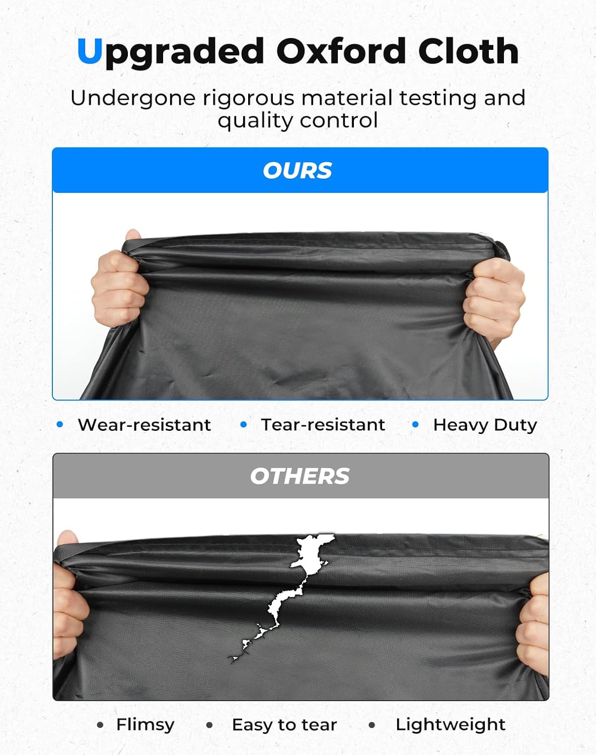 - Waterproof Oxford Cloth: Made from Oxford cloth with a waterproof PU and UV-resistant coating, our KEMIMOTO cover can withstand harsh conditions and prevent water seepage under 3000 Pa pressure. This keeps your SXS and rig protected from debris and weather damage, especially during the hot summer