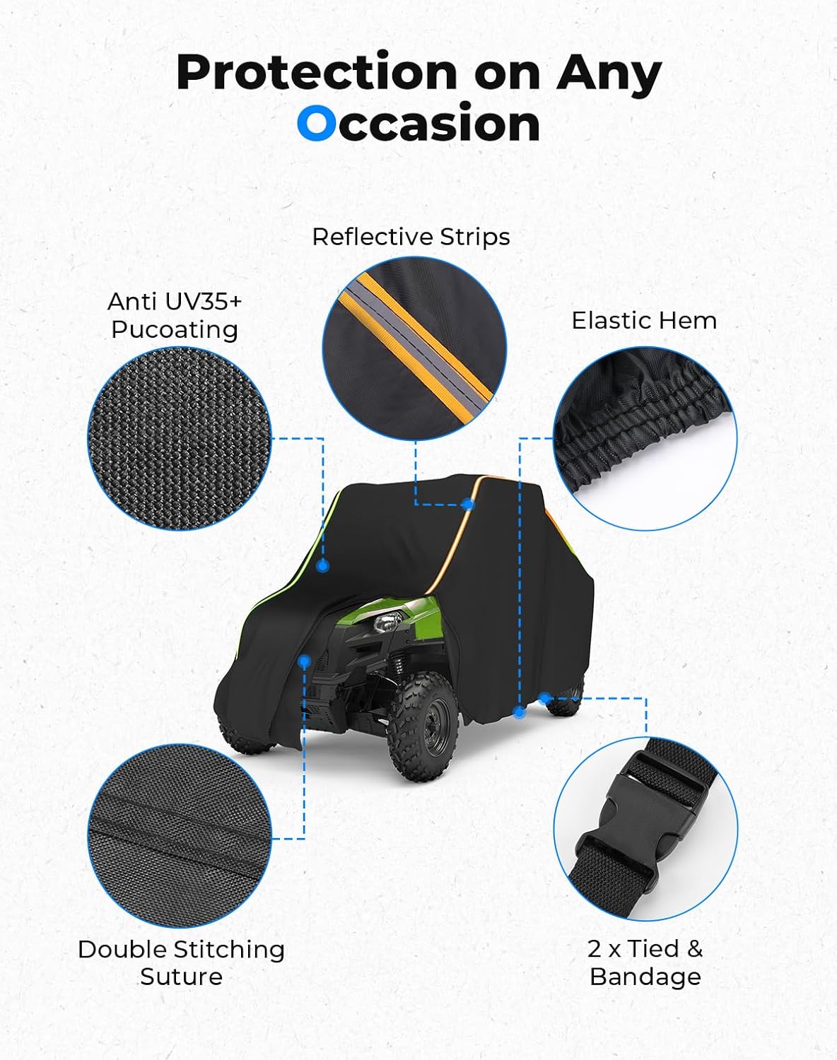 - Be Seen at Night: The 2 seater cover features long reflective strips on both sides, providing a large reflective surface area for more effective warning signals to prevent collisions after parking at night. With this cover, your UTV will always be pristine. Simply remove the cover, jump on, and go