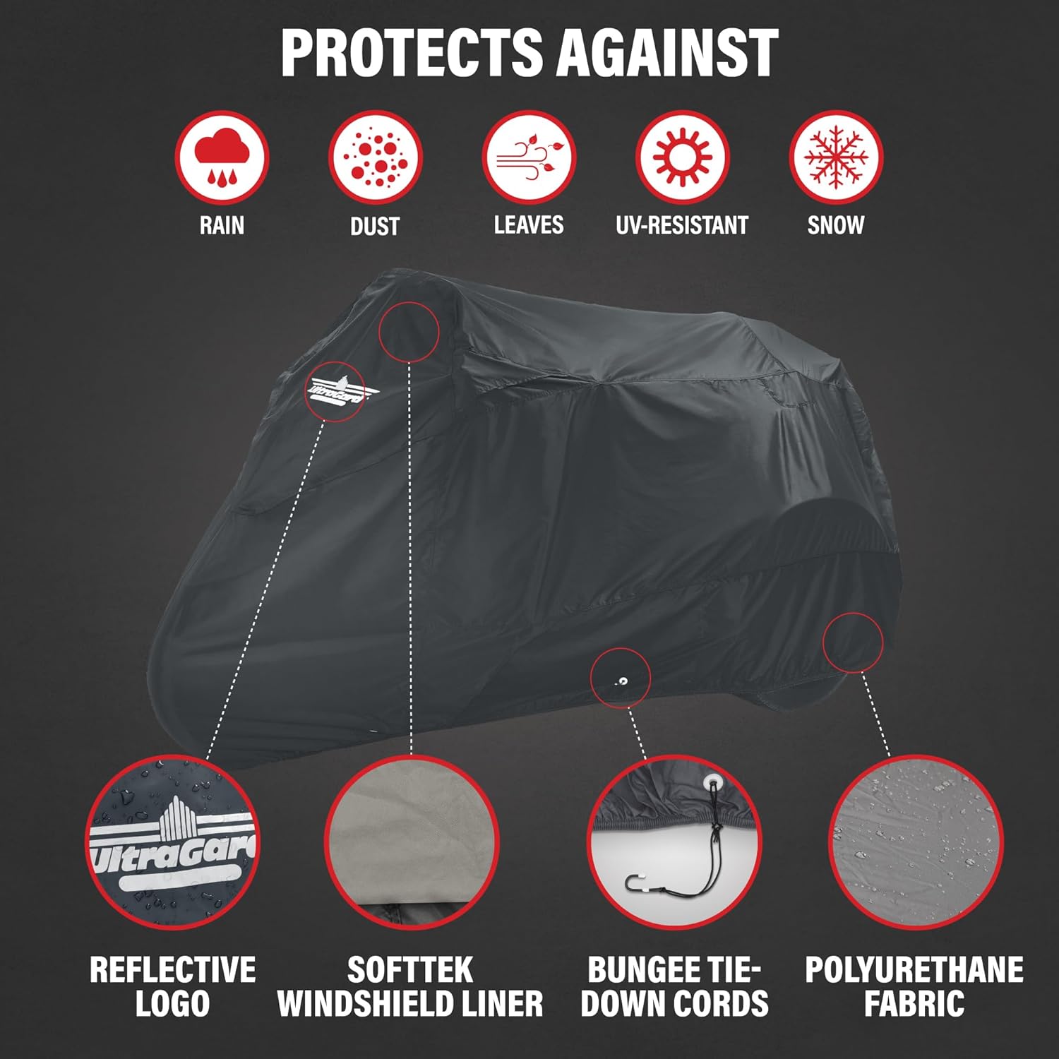 - Intelligent Accessory Protection - Our cover isn't just for your motorcycle; it includes an expandable windshield pocket for specific models and antenna flaps. Plus, the built-in windshield liner adds an extra layer of care