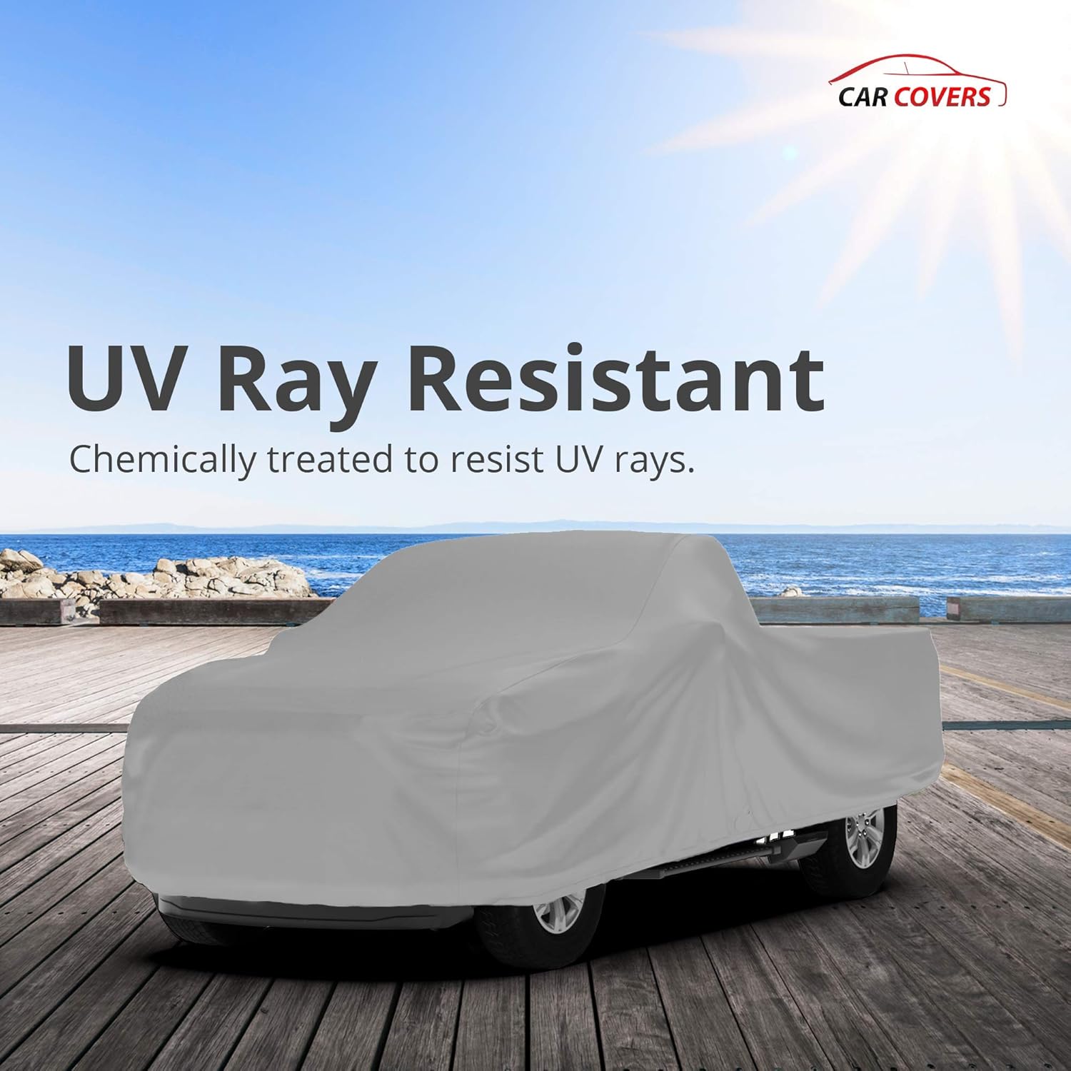 - YEAR-ROUND PROTECTION PREVENTS DAMAGE: Specially made full exterior covers for all indoor and outdoor elements, our top-quality multi-layer truck covers feature breathable interior fabric with double stitched, welded, and reinforced seams and an ultra soft fleece inner lining to protect paint and to ensure your vehicle’s surface finish stays in pristine condition.
