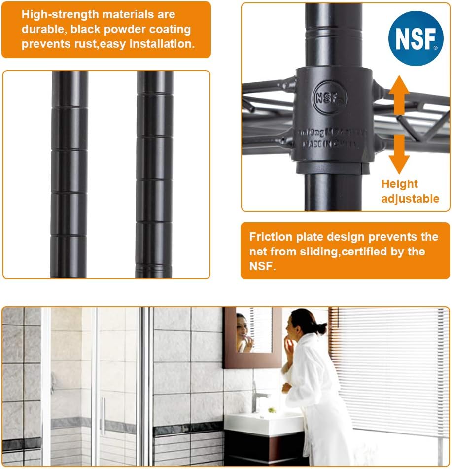 - âăLARGE AND STURDYăïŒThe wire shelving unit provide an enormous amount of space and strong shelves. The metal shelf doesn't occupy too much space,but it can create more additional space. The storage shelves use durable steel construction,and to resist dirt buildup and corrosion. Maximum weight capacity per shelf is 150lbs when equally distributed on feet levelers.Maximum entire unit weight capacity is 220lbs when equally distributed on casters.wire shelving unit metal shelf storage shelves.