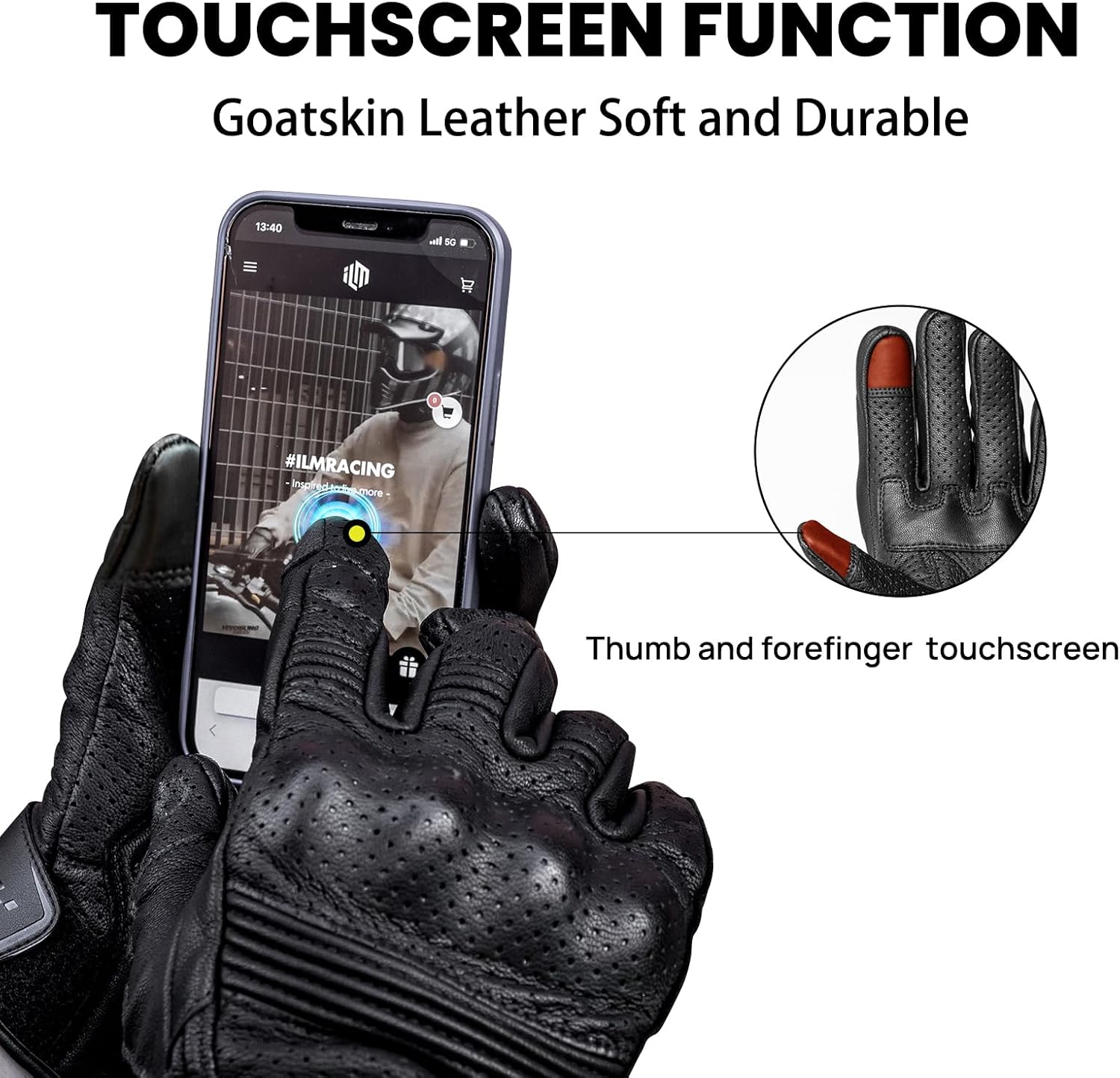 ILM Goatskin Leather Motorcycle Motorbike Powersports Racing Gloves Touchscreen for Men and Women Model DN01(XL, Black Perforated)