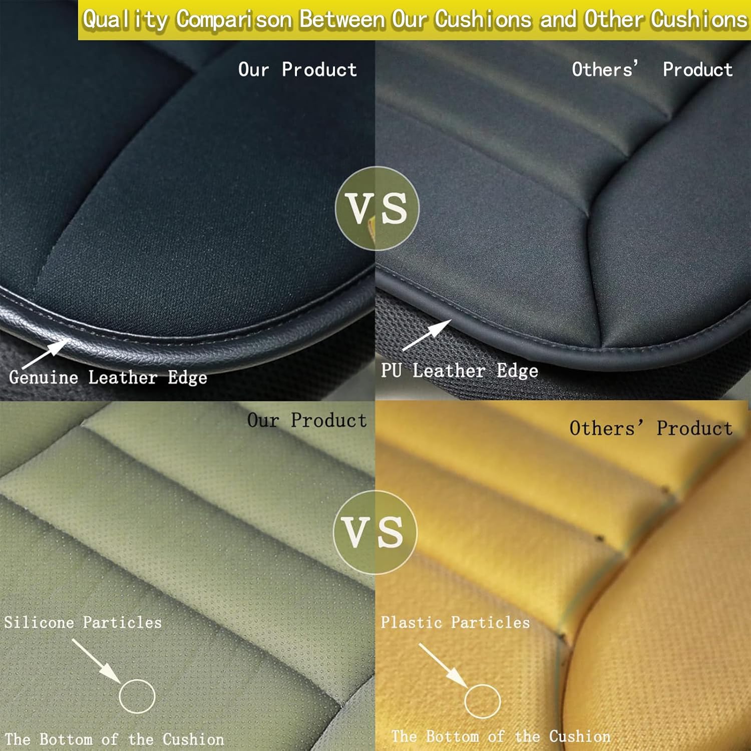- ★【Non-Slip Bottom】The automotive seat cushion has silicone particles on the bottom, which makes it stay in place on slippery seating surfaces. 【pay attention】Silicone particles that are too large will wear the seat of your car,too small will not stick to the seat, and the size of our silicone particles is chosen by many tests, And the texture of silica gel particles is sof,not only will it be firm and stable on smooth car seats,but will not causes wear and tear to your car seat.