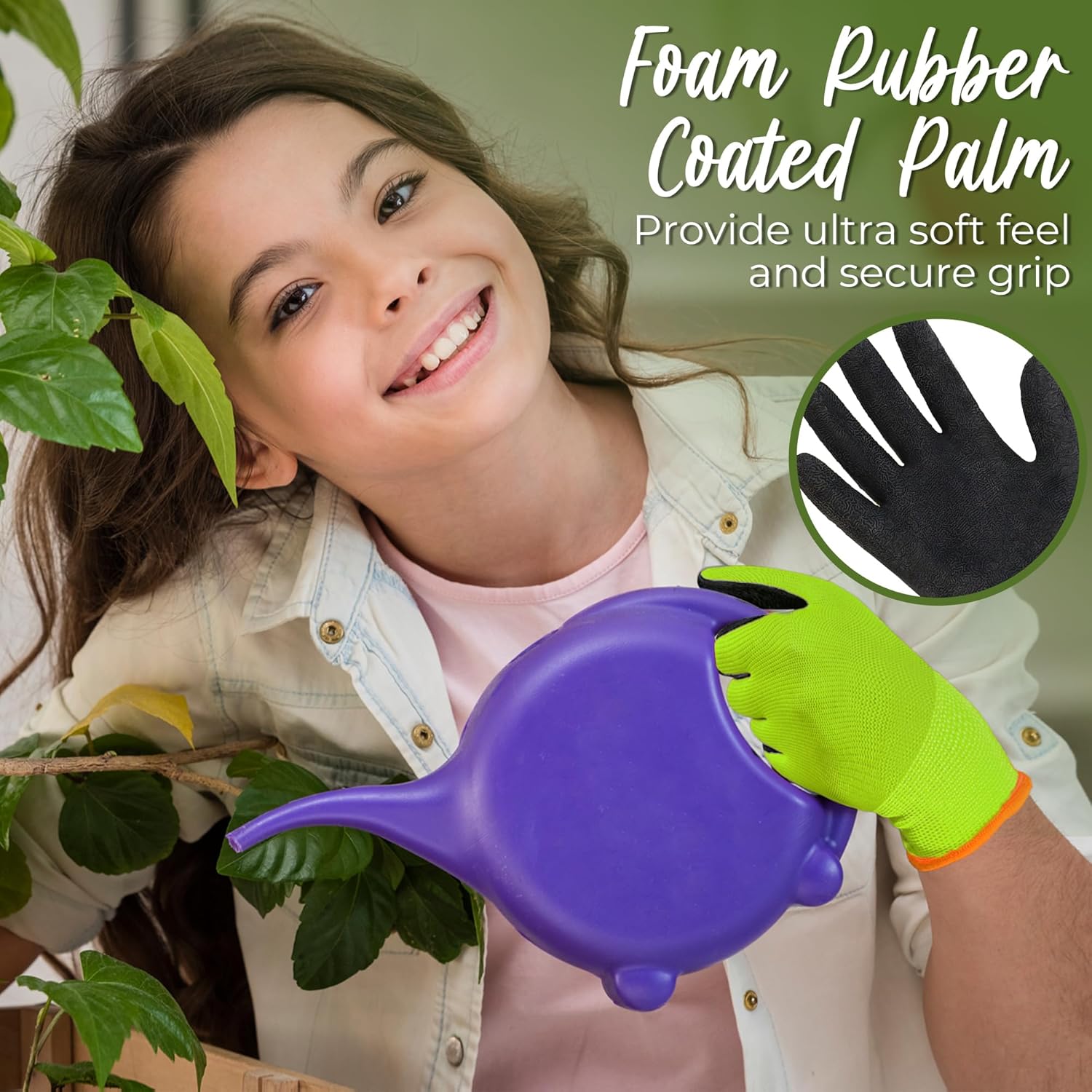 - Natural latex foam rubber coating kids gardening gripper gloves for high breathability and keeps hands cool and dry