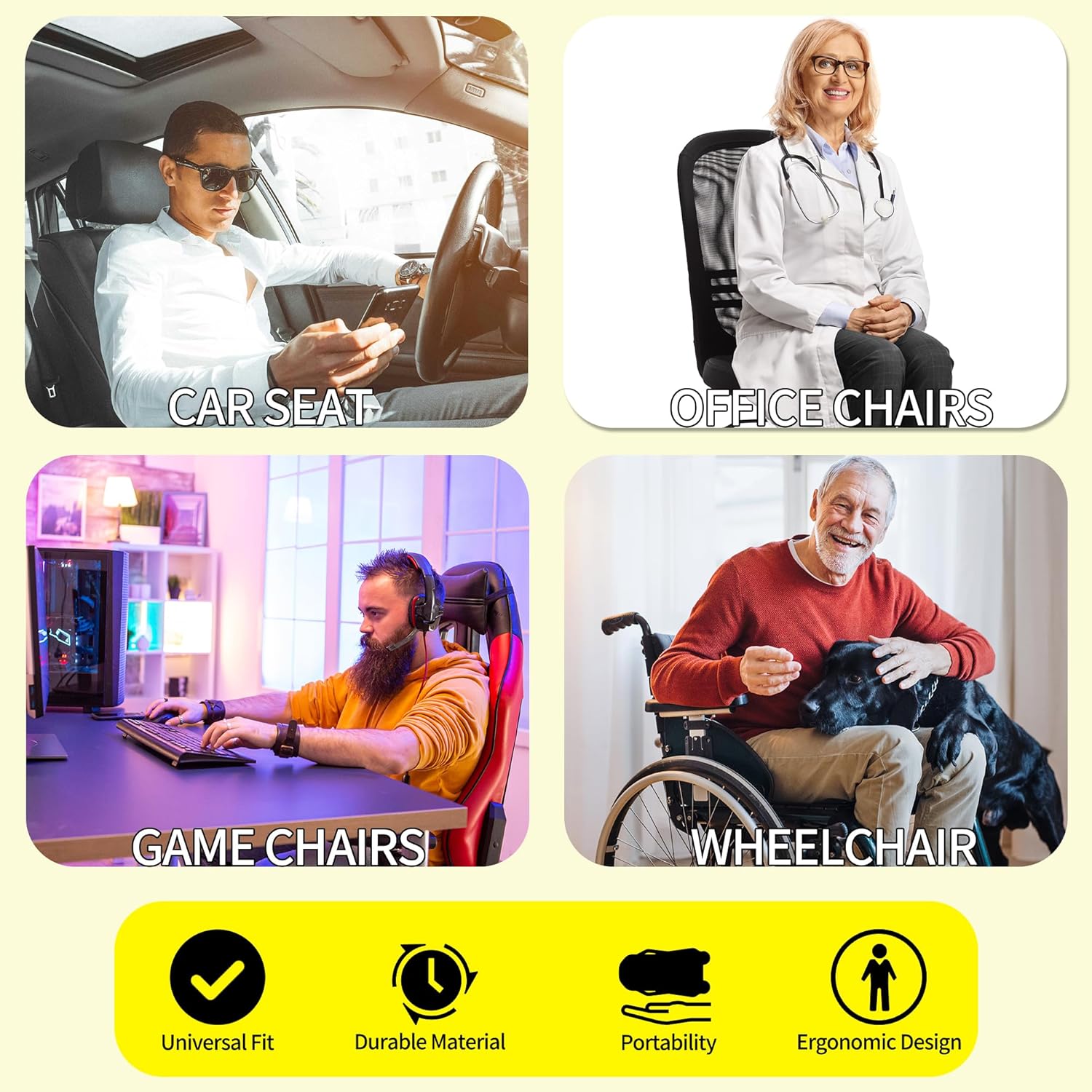 - 【Ergonomic Design】Long-term driving can often lead to back pain. Our car seat cushions for driving are uniquely designed with ergonomics in mind, helping to relieve sciatica and tailbone pain. They effectively reduce leg pain, fatigue, and numbness, making driving a more comfortable experience. They also help alleviate pressure on the tail and sciatica, as well as promote proper sitting posture.
