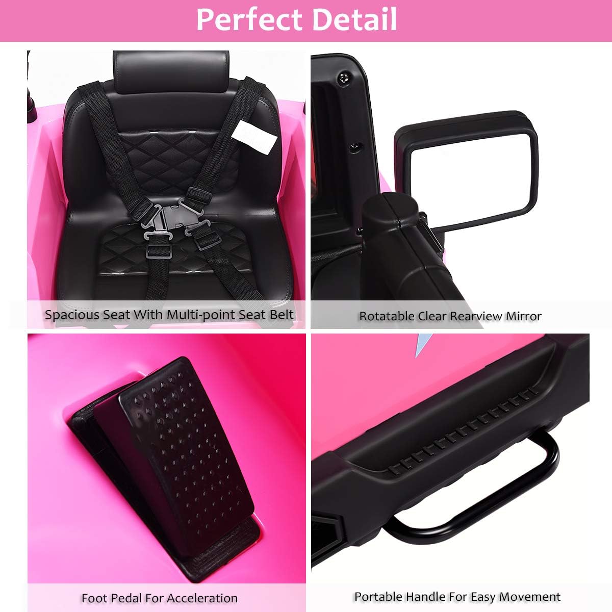 Costzon Ride On Car, 12V Battery Powered Electric Ride On Truck w/Parental Remote Control, LED Lights, Double Open Doors, Safety Belt, Music, MP3, Spring Suspension (Pink)