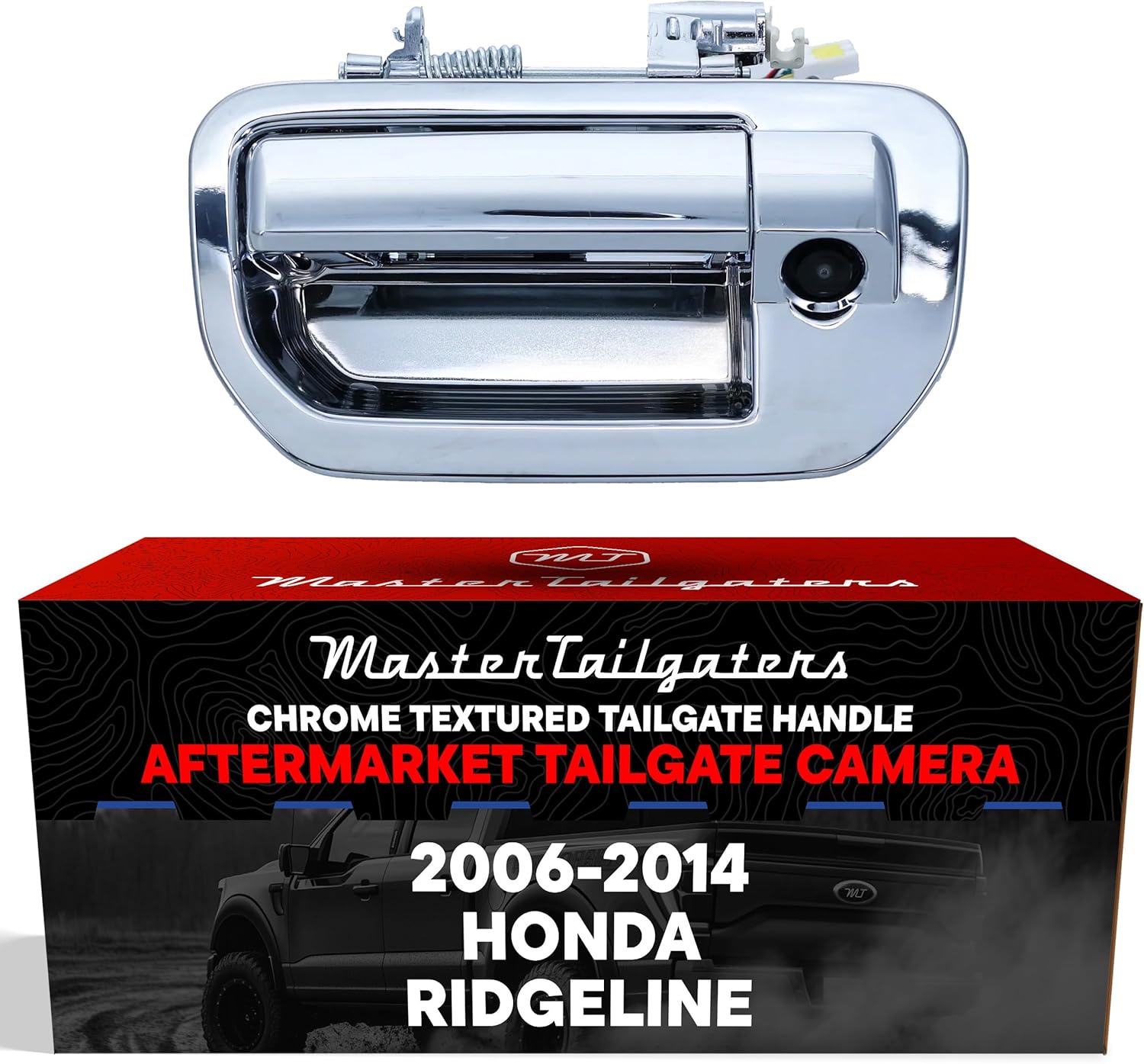 Master Tailgaters Chrome Tailgate Handle with Backup Camera Replacement for Honda Ridgeline (2006-2014) | IP68 Waterproof | Parking Grid Lines Available | Easy to Install