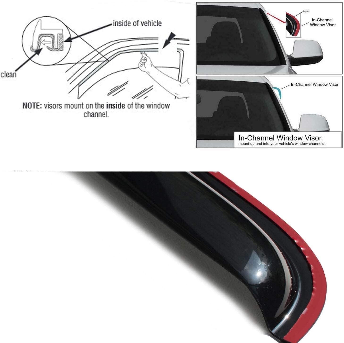 in Channel Window Visor Compatible with Dodge 02-08 Ram 1500 03-09 Ram 2500/3500 Quad Cab Sun Rain Guard Wind Deflector 194623