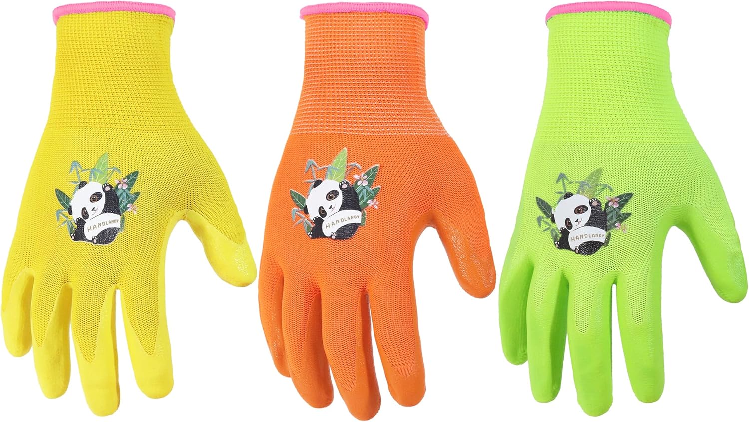 HANDLANDY 3 Pairs Kids Gardening Gloves Latex Free, Nitrile Coated Children Toddler Garden Yard Outdoor Playing Gloves for Little Girls Boys (Size S)