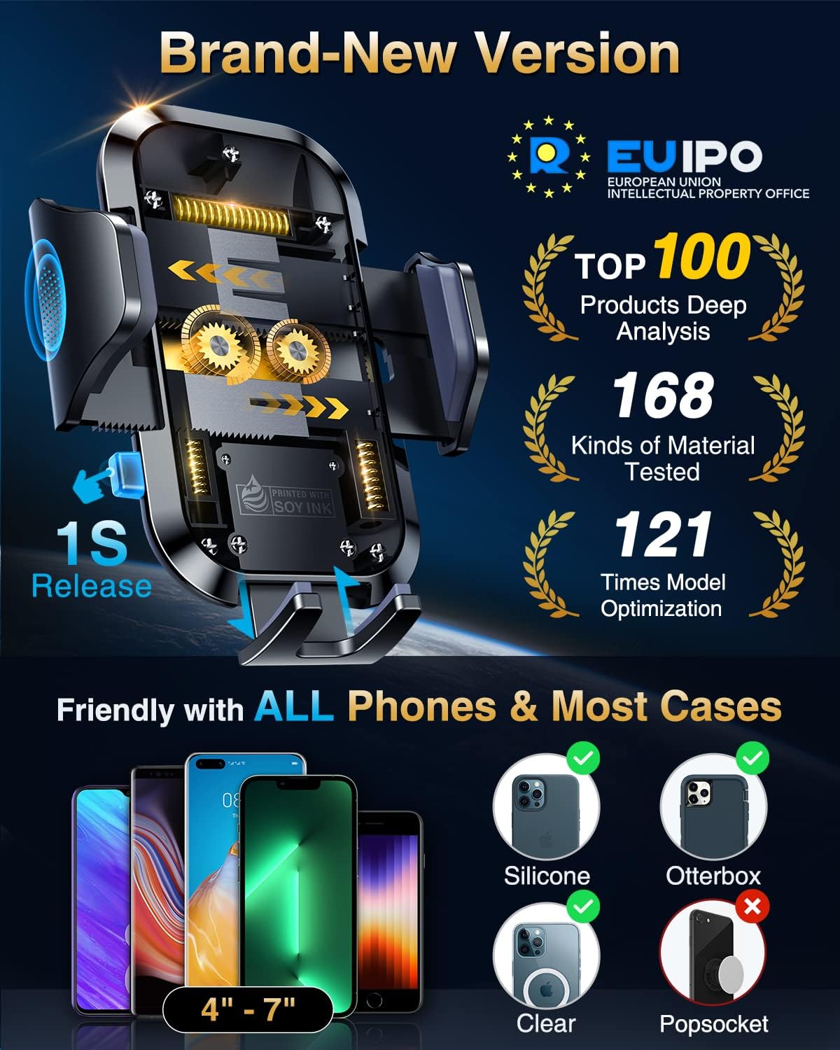 - ăHolder King: Sturdily Guard You Safe DrivingăFocusing on customers' needs, we created the Pro Version car mount that is suitable for both cell phones & cases; and deepened the clamping arm to 0.6 inches to ensure a more stable support. The Pro Version car mount is suitable for all 4-7 inches cell phones & 99% of phone cases, compatible with iPhone16 Pro Max 15 14 13 12 X 8 7 Mini, Samsung Galaxy S22 S21 S20 Ultra Note 20 A71 A51 A50 A10, LG, Google Pixel, Xiaomi, Motorola, OnePlus
