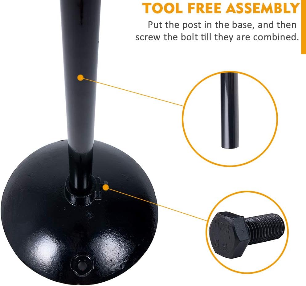 - [EASY INSTALLATION WITH NO TOOLS REQUIRED] - Two separate poles sliding into each other form the post; And insert the post into the center of the base; Predrilled holes with 2 nuts and bolts for mounting signs. The whole assembly needs zero tools