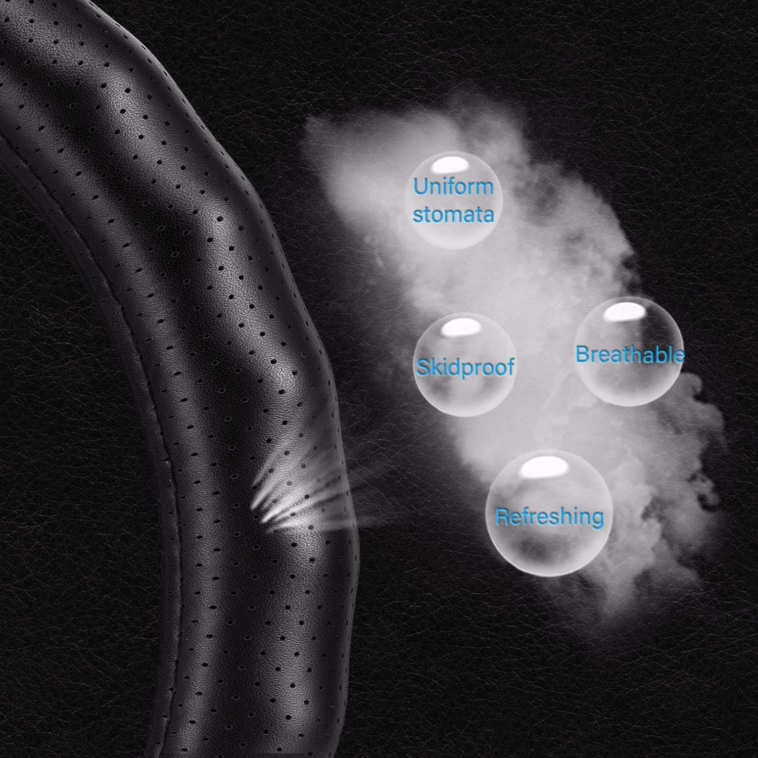 - TOP QUALITY MATERIAL: Black leather steering wheel cover is made of pure cowhide, natural, skidproof, stable. The entire steering wheel has only one interface!