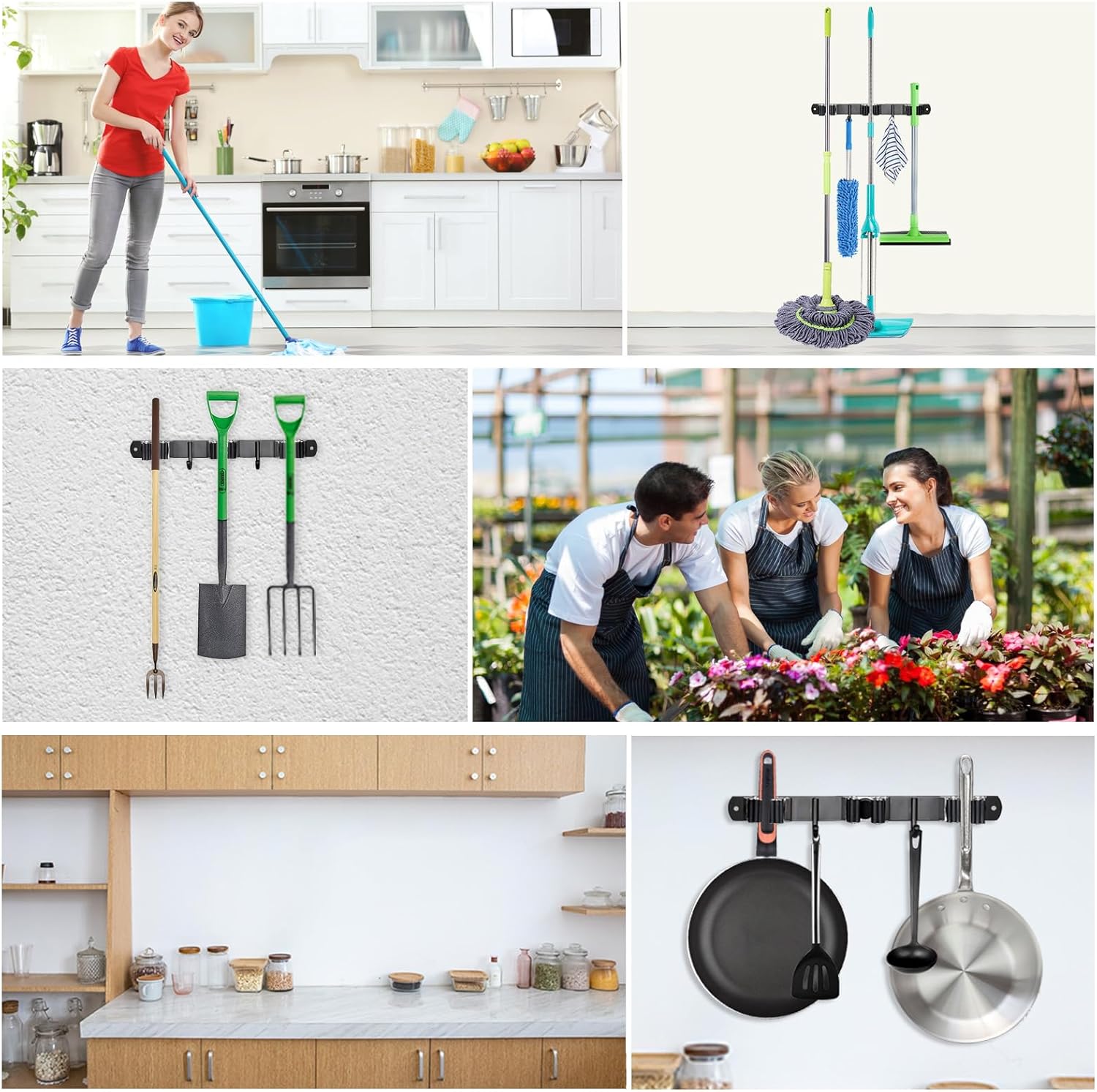 - Multipurpose: In addition to cleaning tools, the rack for hanging brooms mops etc can be used to store a wide range of other items, such as sports equipment, gardening tools, or even office supplies. This makes mop broom holder a versatile storage option for any space, and allows you to get the most out of your investment.