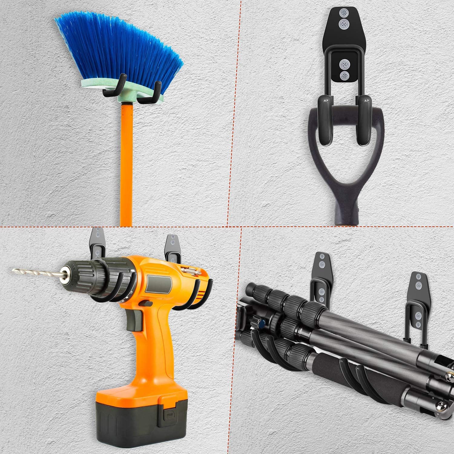 - ★--PREMIUM QUALITY -- The storage hooks are made of A9 steel with anti-slip PVC dipping coated preventing the scratching , Sturdy design provides superior load-bearing capacity, which allows garage hooks to hold various tools firmly, including power tools, garden tools, shovel, weed eater, broom, ladder, bicycle, ropes, hoses, etc. They're durable to endure a life-long time using experience.