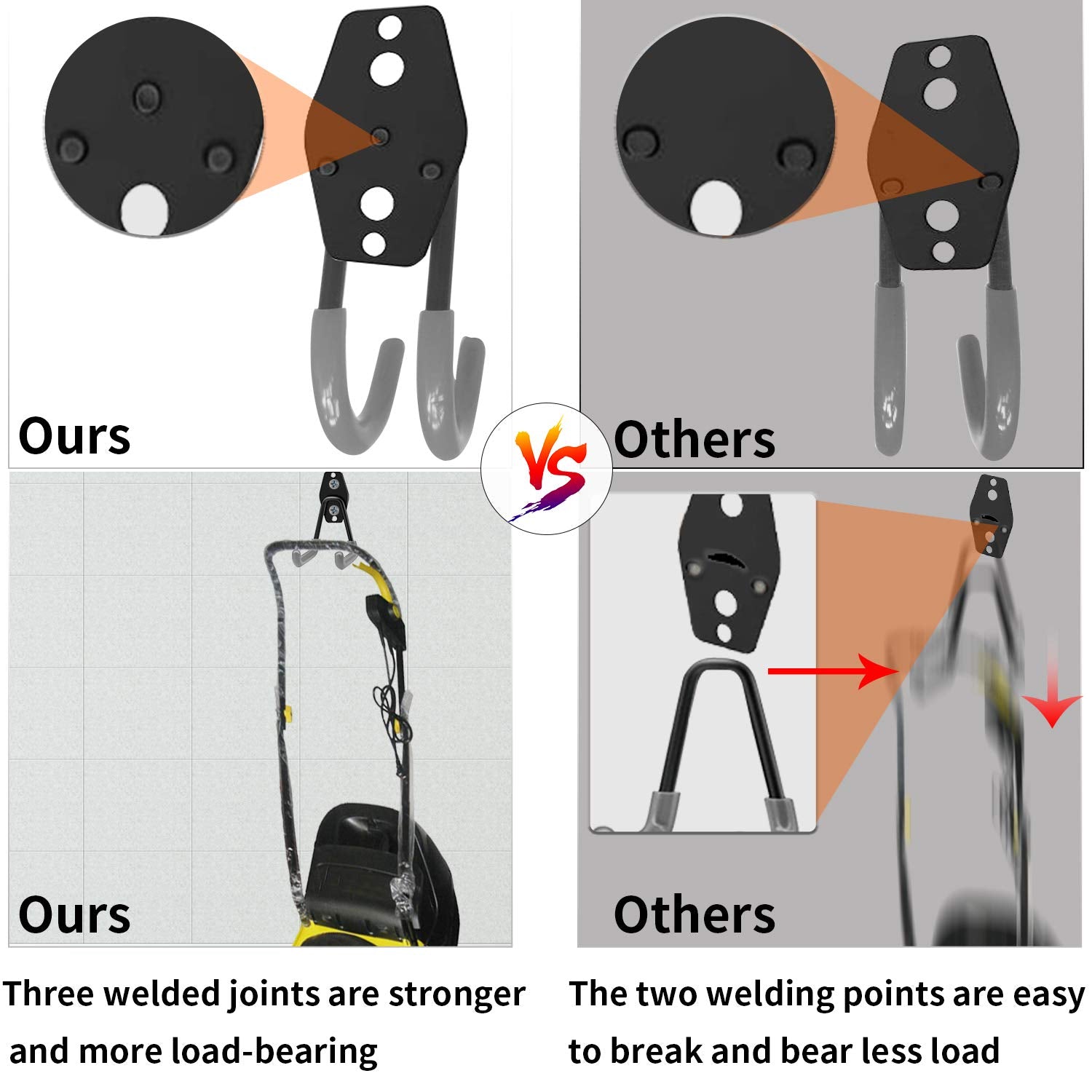 - ★--Strengthen 3 WELDING SPOTS - By welding 3 spots to connect the garage double hook with the base board firmly, while other similar products in market have 9 welding spots only, we provide the most secure storage hooks for garage wall in market.