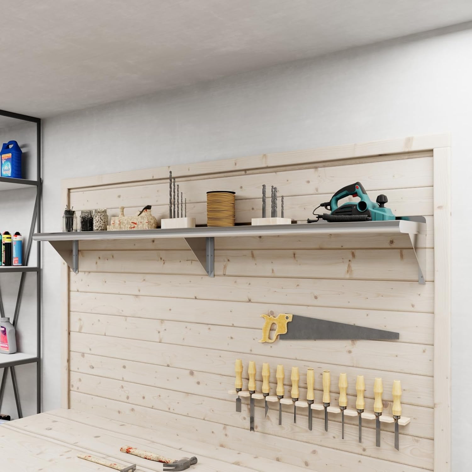 - This corrosion-resistant wall mount shelf can handle anything you throw at it and will last for years to come. Easy to clean and sterilize, metal shelves are superior to wood or glass. Food and liquid won’t get stuck or ruin the integrity of the surface. Easily wipe away excess with no fuss, mess, or contamination.