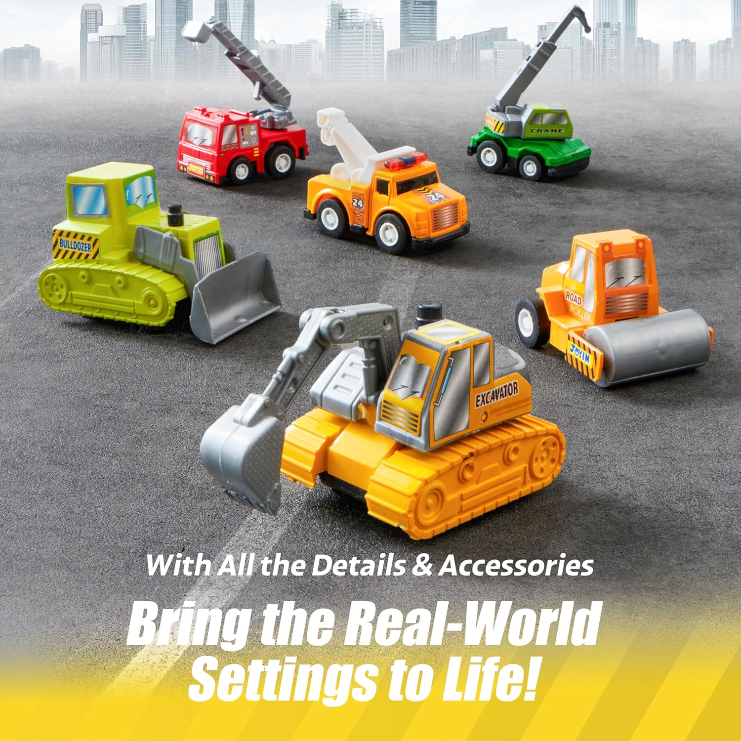 JOYIN 18 Pcs Pull Back City Cars and Trucks Toy Vehicles Set, Friction Powered Cars Toys for Toddlers, Boys, Girls’ Educational Play, Kids Stocking Stuffers, Treasure Box Gifts for Classroom