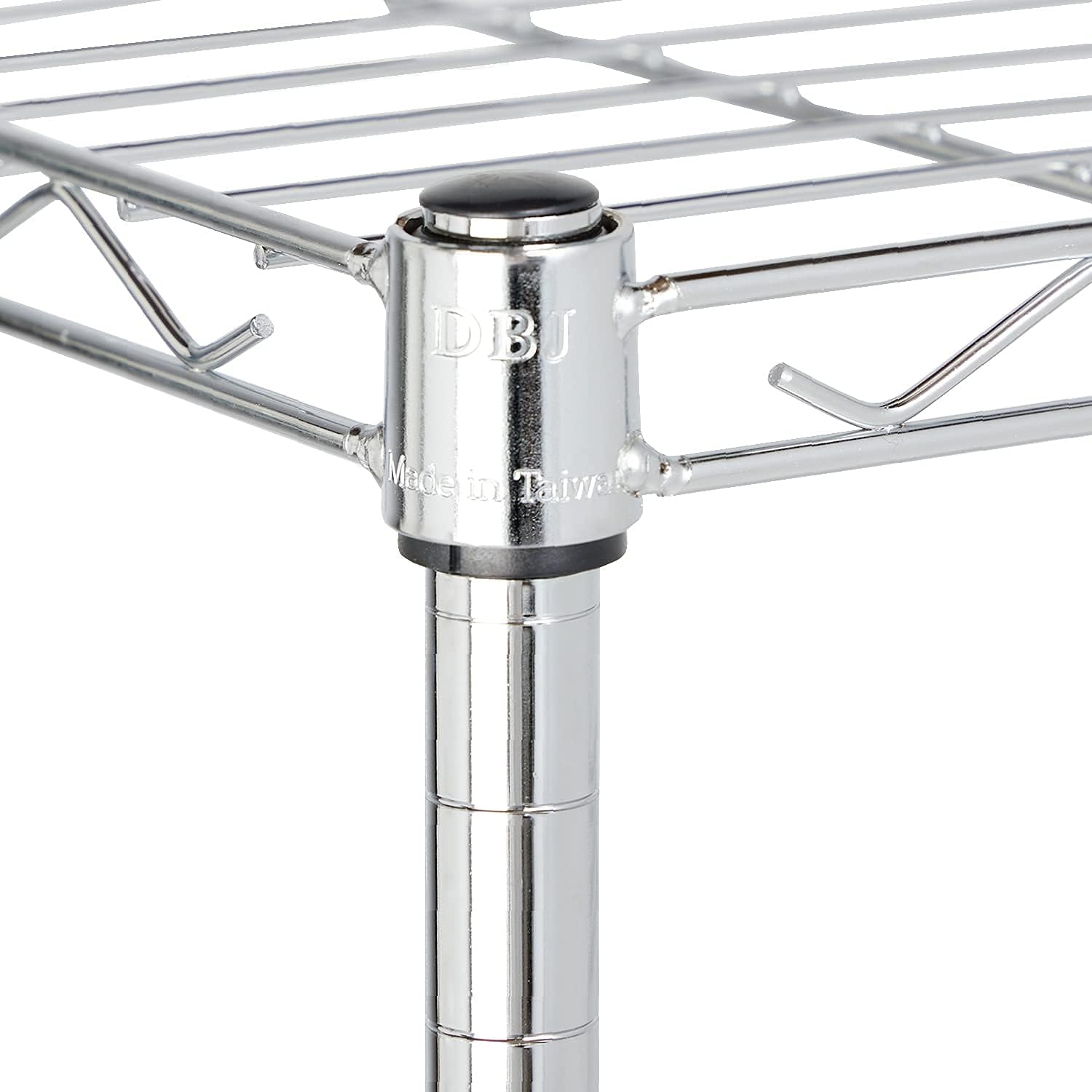 - Our (CHROME FINISH) heavy duty standing wire rack shelving units include 4 rubber casters wheels (2 Locking) for easy mobility as well as 4 leveling wide feet that is perfect for your garage, bedroom, kitchen shelf plans, pantry shelving organization
