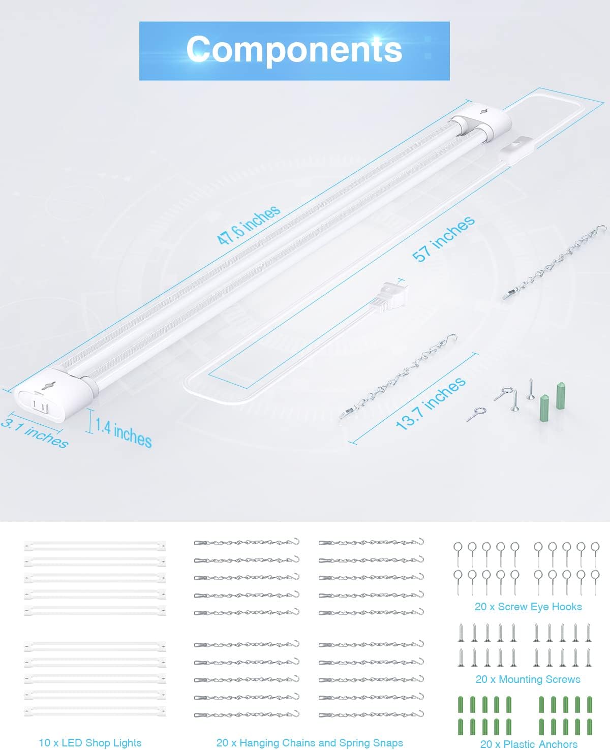 - 💡Linkable - Up to 4 of these led linkable shop lights can be connected together seamlessly with accessories provided to save energy. Daisy chain design and no additional wiring to save your time.