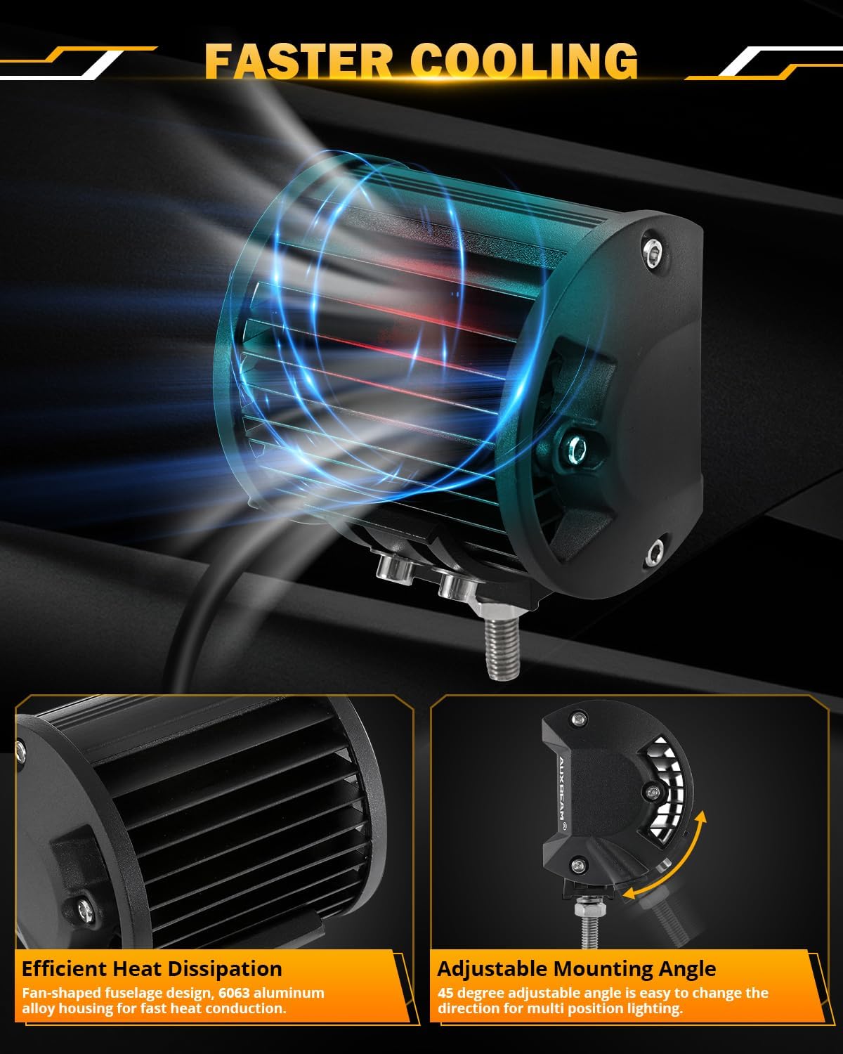 - 【UPGRADE 6 LIGHTING MODES】Auxbeam 4 inches light bars can switch between white, amber, white&amber, white/flash, amber/flash and white&amber/strobe by switching the light mode. Our design is very suitable for warning lights, fog lights, driving lights or work lights. 100% efforts has been devoted to help driver save time, save money and safe driving