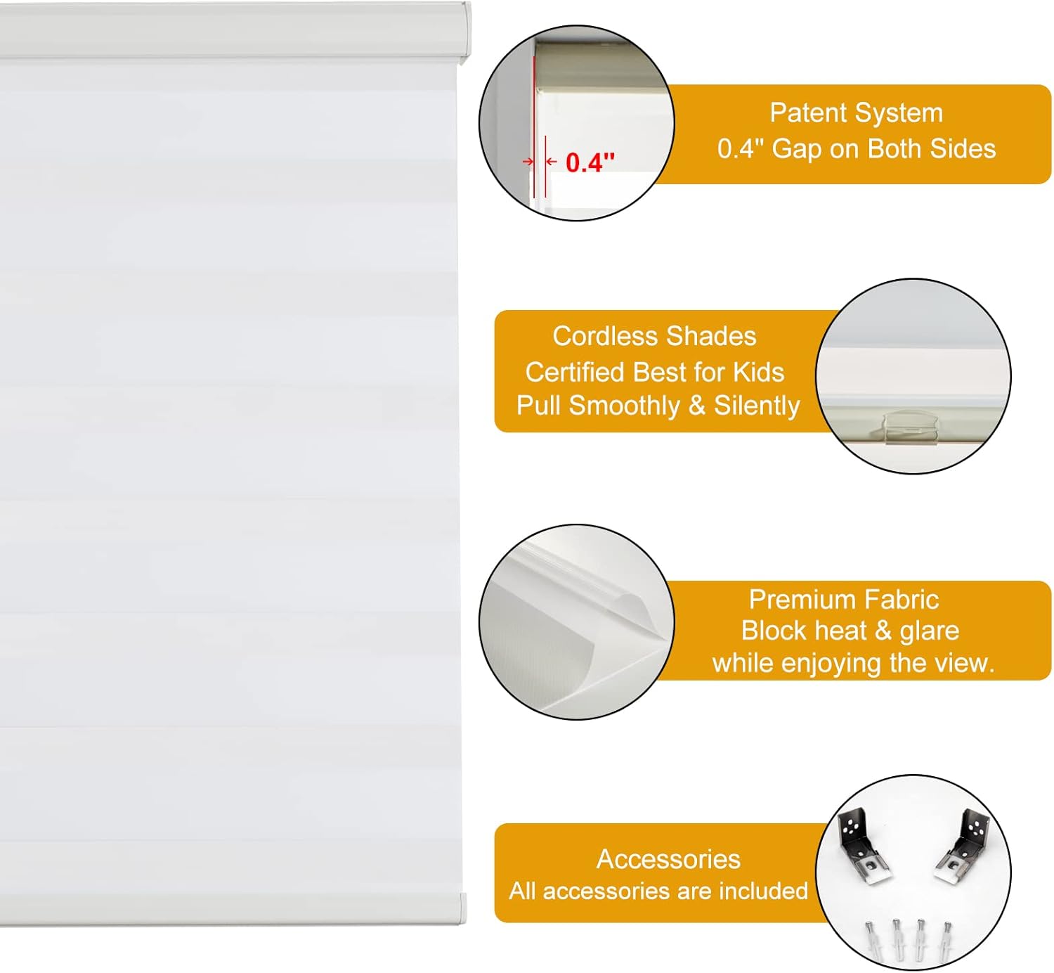 Persilux Cordless Zebra Blinds for Windows Free-Stop Window Shades (27" W X 72" H, Cream) Dual Layer Light Control for Day and Night, Light Filtering Sheer Shades for Home, Easy to Install
