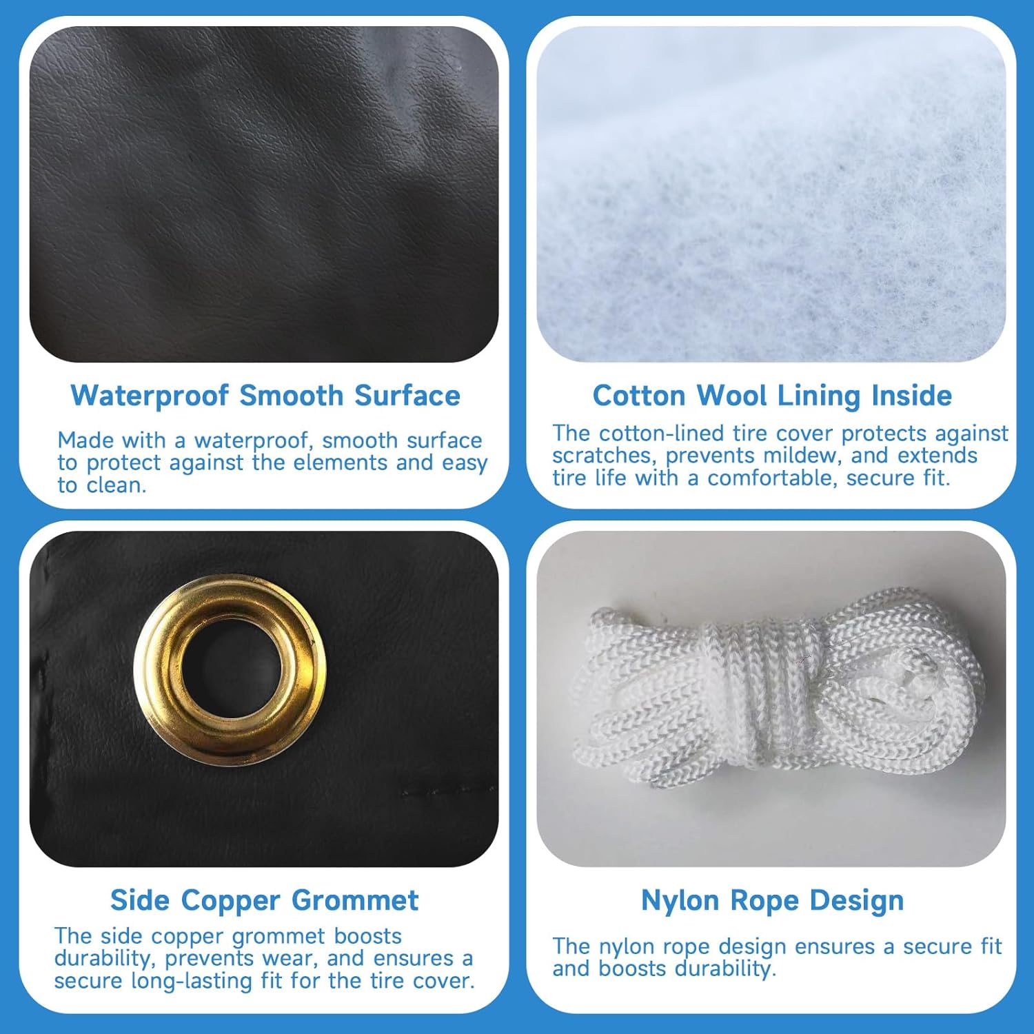 - Windproof Tire Covers: Featuring an elasticized back hem and hook design for a secure fit, these tire covers stay firmly in place, even on windy days. They are easy to install and remove.