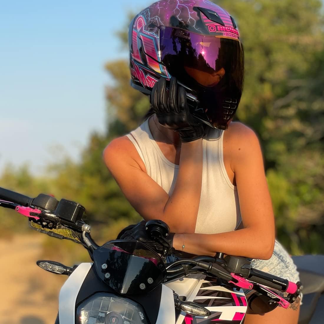 - Womens Motorcycle Gloves Features a touchscreen function: it doesn’t limit you to use your phone while riding motorcycle ;The gloves act as a second screen you don’t have to remove it now and then in order for you to use you phone.**Size Dimensions: XS: 5.5-6/INCH S: 6-6.5/INCH M: 6.5-7/INCH L: 7-7.5/INCH XL: 7.5-8/INCH**