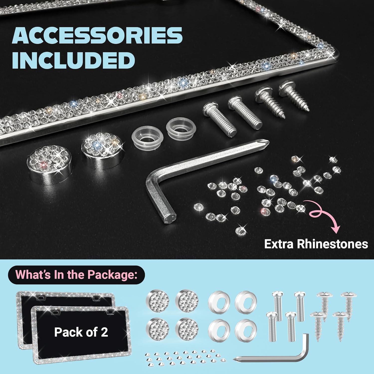 - Screw & Bling Cap Accessories Included: Includes multiple screws, blingy caps, and extra rhinestones in multiple sizes for a flawless, secure fitâmaking installation a breeze.
