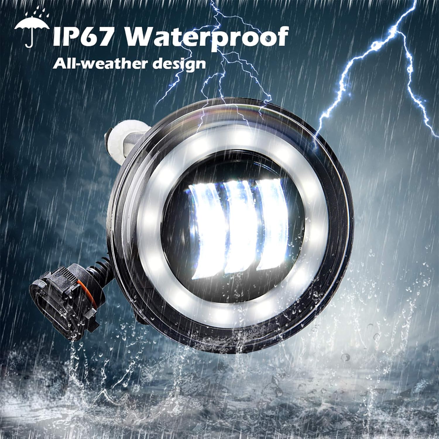 - STURDY CONSTRUCTION: IP67 waterproof, sturdy aluminum housing, performance well in heat dissipation. Our fog lights are made to withstand the rigorous weather conditions and prevent moisture and dust from getting inside the housing.