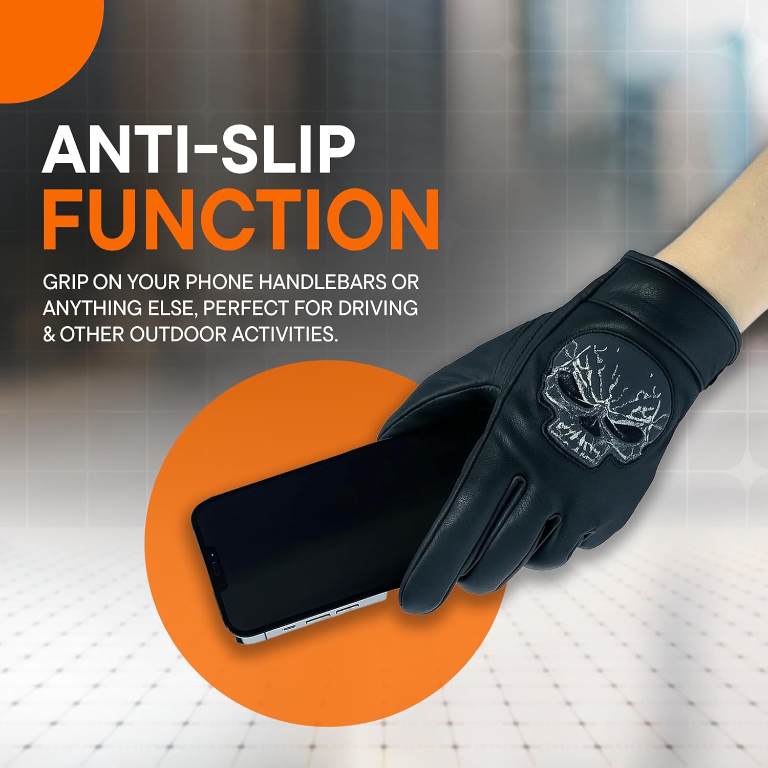 - Durable & Attractive: If you're looking for High-Quality Motorcycle Leather Gloves at a reasonable price, Daniel Smart has you covered. These Motorcycle gloves are durable, lightweight, and breathable. Leather Palm for long-term comfort and Reflective Skull Design.