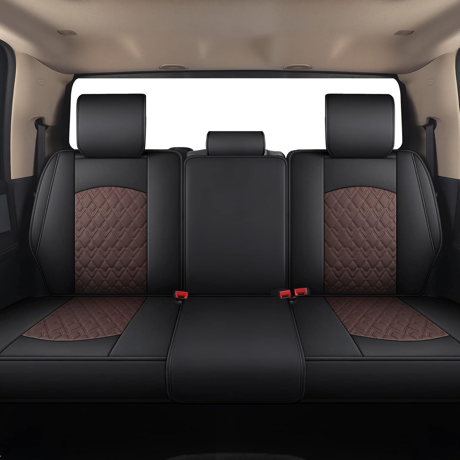 JOJOBAY Car Seat Covers for Dodge Ram Full Set,Fit Ram 2009-2025 1500/2500/3500 Pick-up Truck,Crew,Regular,Quad,Mega Cab,Waterproof Leather Seat Covers Protectors(5PCS Full Set,Black-Brown)
