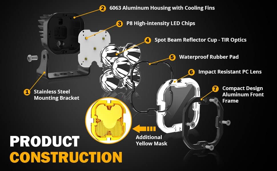 - 【New TIR Optical Design】 3 inch led cube lights use innovative TIR technology (Total Internal Reflection), which not only enables the beam to reach a high focus range but also dramatically improves the lighting efficiency, reducing glare, emitting more brightness than normal LED lights under the same power.