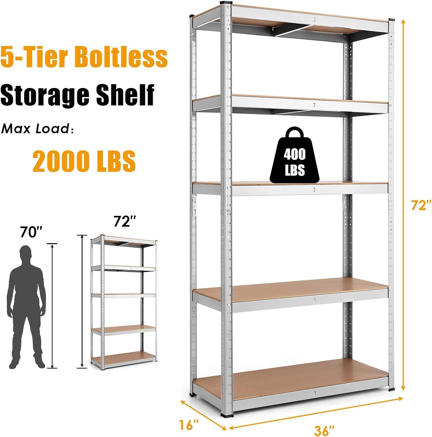 - NO-TOOL, NO-BOLT ASSEMBLY – Effortlessly snap shelves into place with the innovative bolt-free design. Adjust heights in seconds and disassemble just as easily for storage or relocation.