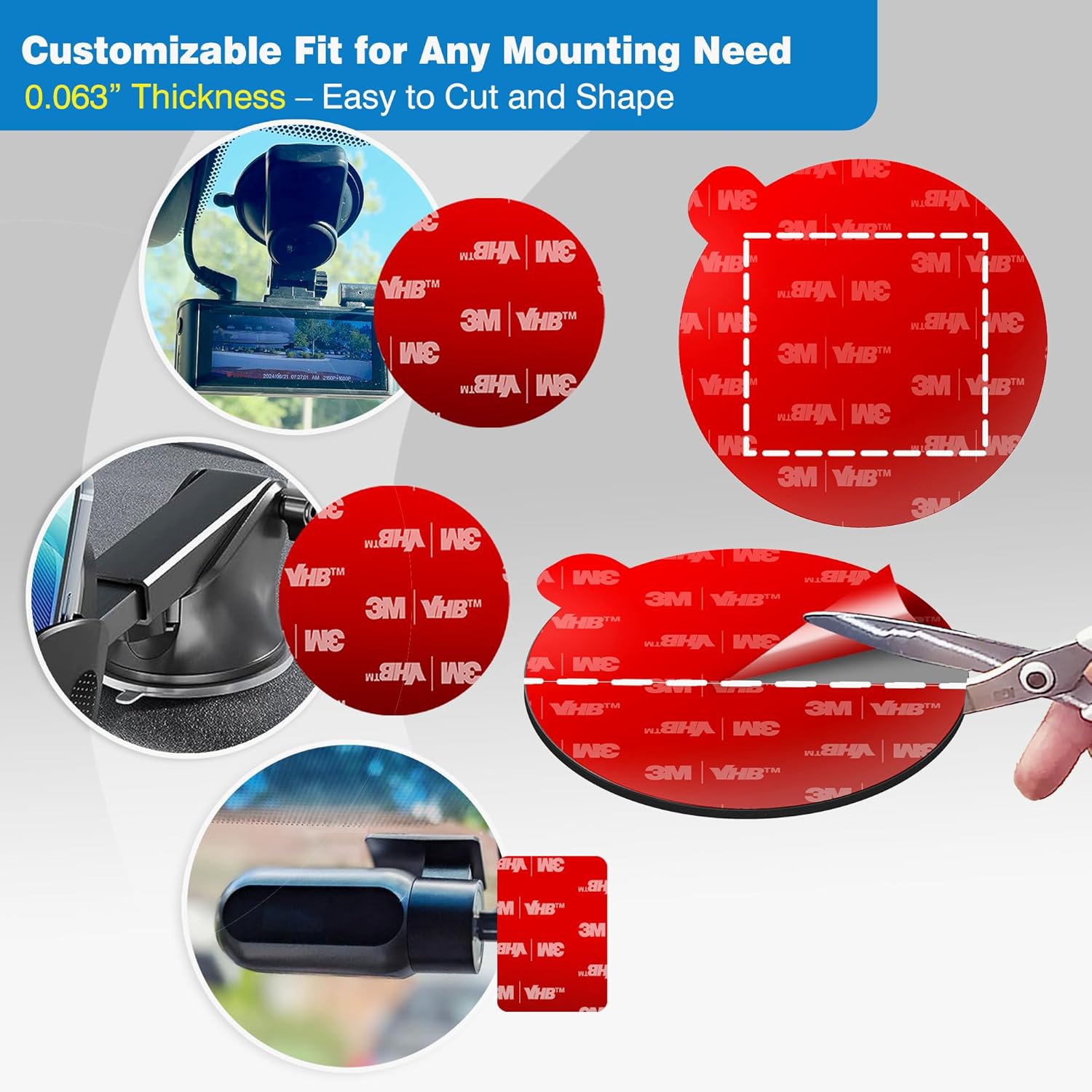 - Exact Size & Compatibility Notice – Pads are 0.063" (1.6 mm) thick, 2.2" (56 mm) round, and not magnetic. Designed for flat mounting surfaces only; not suitable for textured dashboards without an adapter. Easy to cut to fit other device bases or custom shapes. Check mount size before ordering to ensure proper fit.